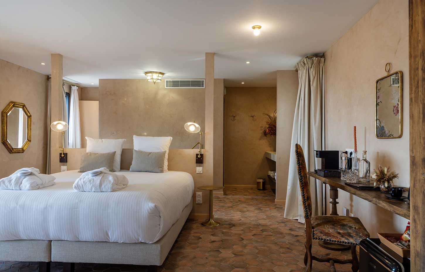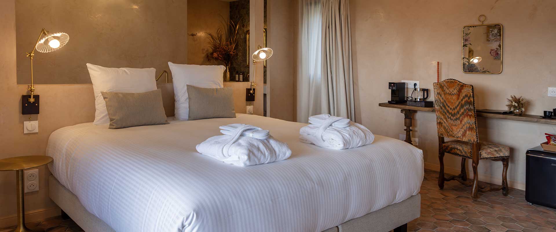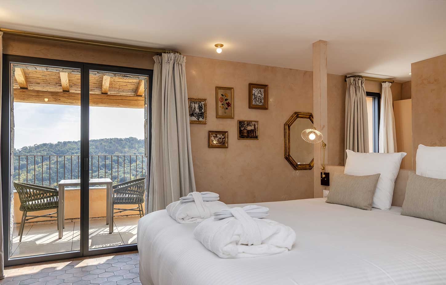 Avec des dimensions supérieures à 35 m2 et dotées de vastes terrasses avec pergola de minimum 12m2, orientées plein sud, donnant à la fois sur la mer et la montagne, nos chambre doubles vont permettront de profiter de la sérénité et du charme du lieu.